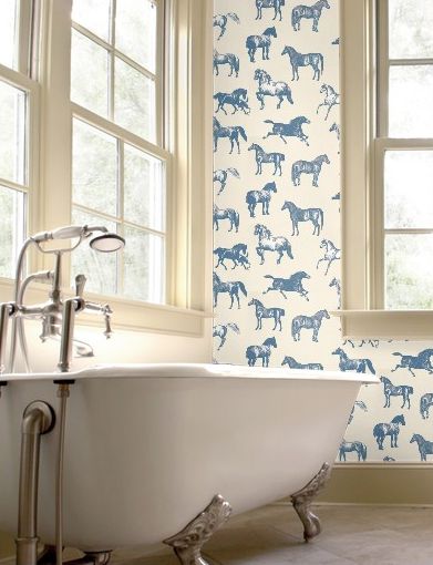 Если ваша любовь к лошадям – всерьез и надолго, выберите обои с их изображениями. В случае, когда стиль комнат не позволяет такой вольности или вы боитесь, что рисунок слишком быстро надоест – оформите так стены в ванной или другой нежилой комнате.