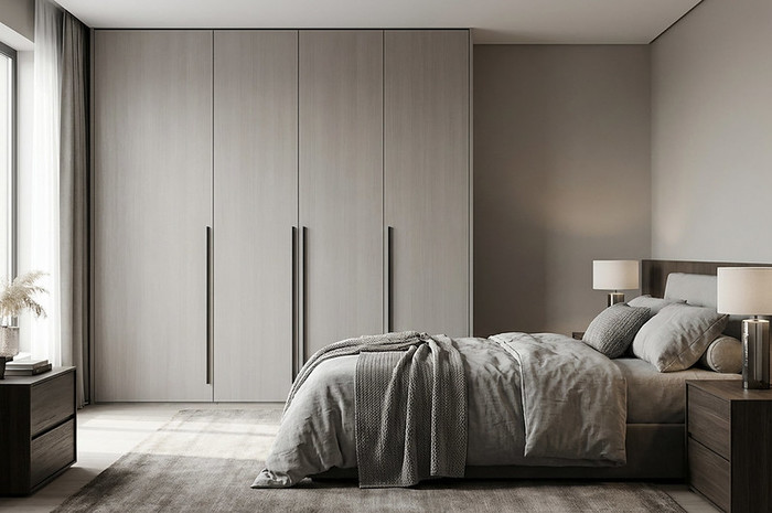 Конечно, распашные двери требуют свободного места для открывания. Но в современных интерьерах это часто превращается в достоинство: зона перед шкафом остаётся открытой, а мебель не «давит» на проход, как массивные системы купе. Особенно это актуально в прихожих, спальнях и гардеробных, где порядок и ясность форм важнее суперкомпактности.